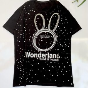 تیشرت نگیندار و مروارید دوزی شده اورسایز یقه گرد بسته