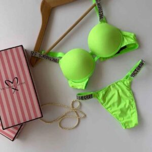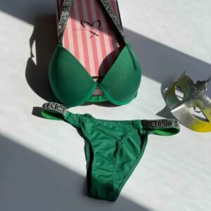💚 ست شورت و سوتین اسفنجی نیم جک برند ویکتوریا سیکرت رنگ سبز اشرافی