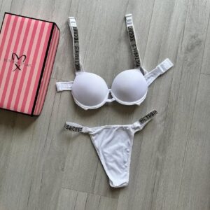 🤍 ست شورت و سوتین اسفنجی نیم جک برند ویکتوریا سیکرت رنگ سفید کلاسیک