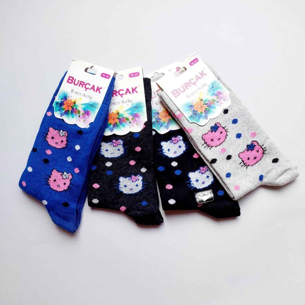 پک ۴ عددی جوراب ساقدار زنانه BURÇAK – طرح گربه فانتزی